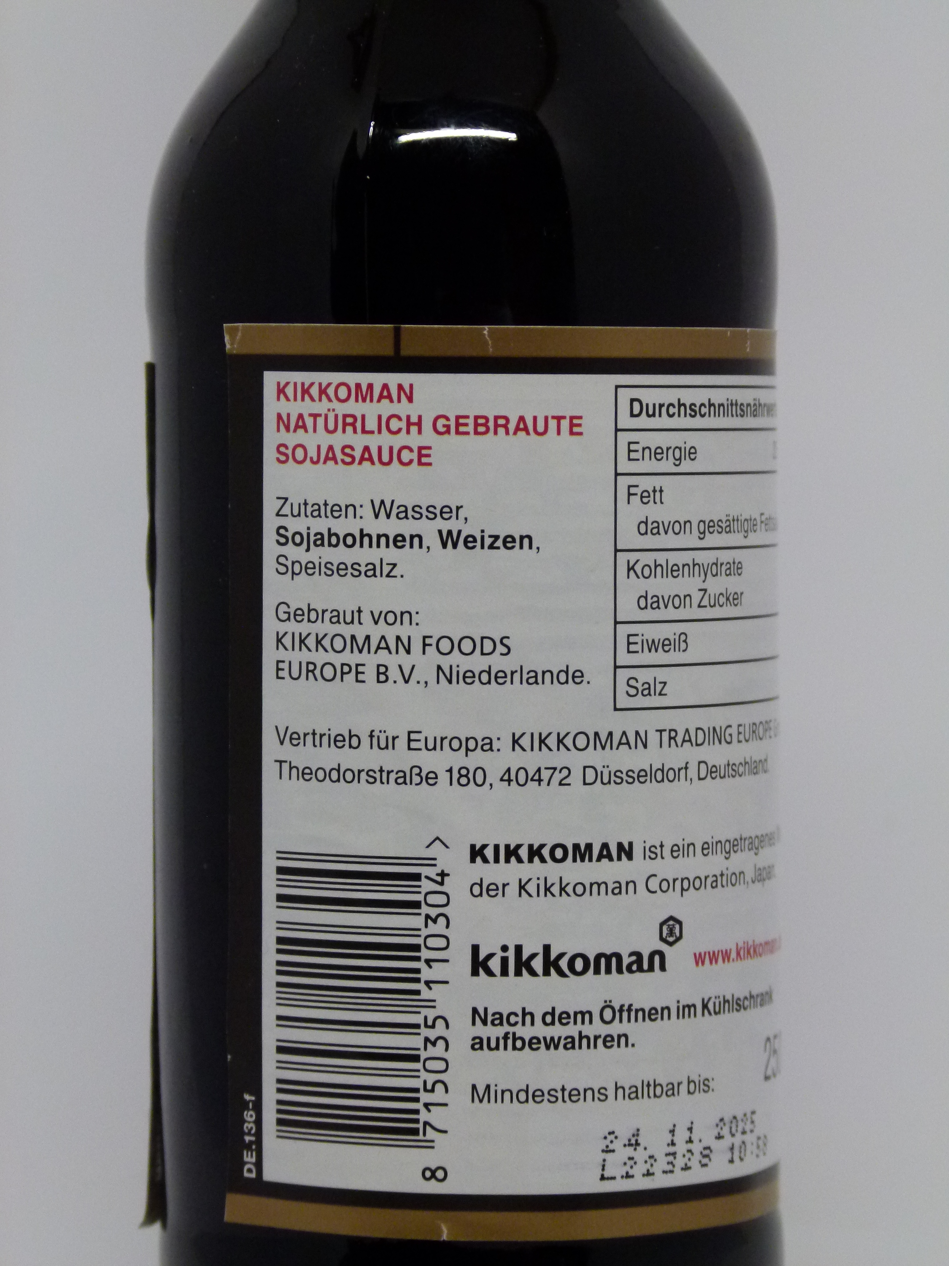 Zutaten: Wasser, Sojabohnen, Weizen, Speisesalz. Hinweis: Nach dem Öffnen im Kühlschrank aufbewahren. Herkunft: Niederlande Importeur: Asia Express Food Kilbystraat 1, 8263 CJ Kampen (NL) .