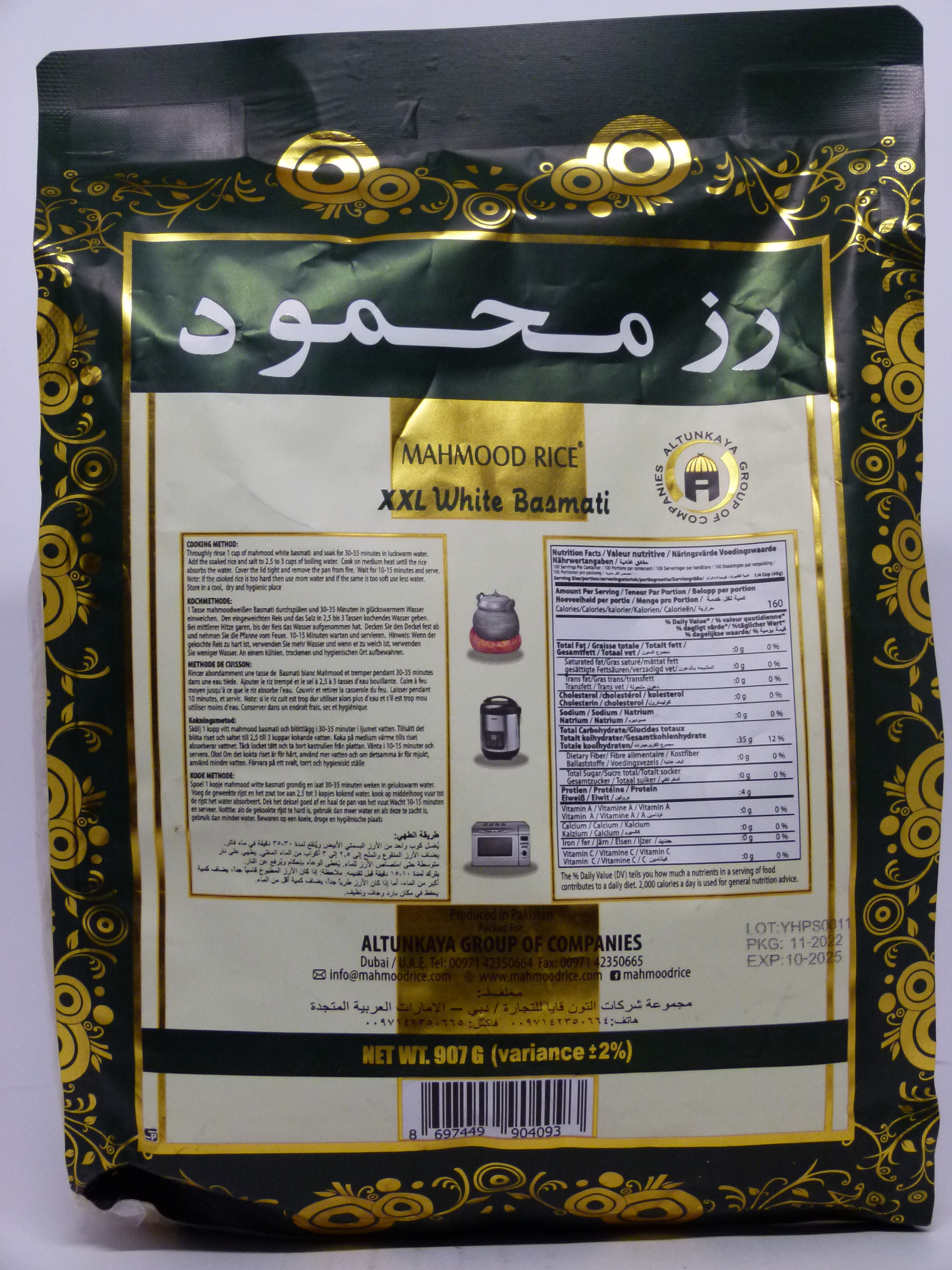 Mahmood XXL White Basmati Premium Rice, Nettogewicht 907g