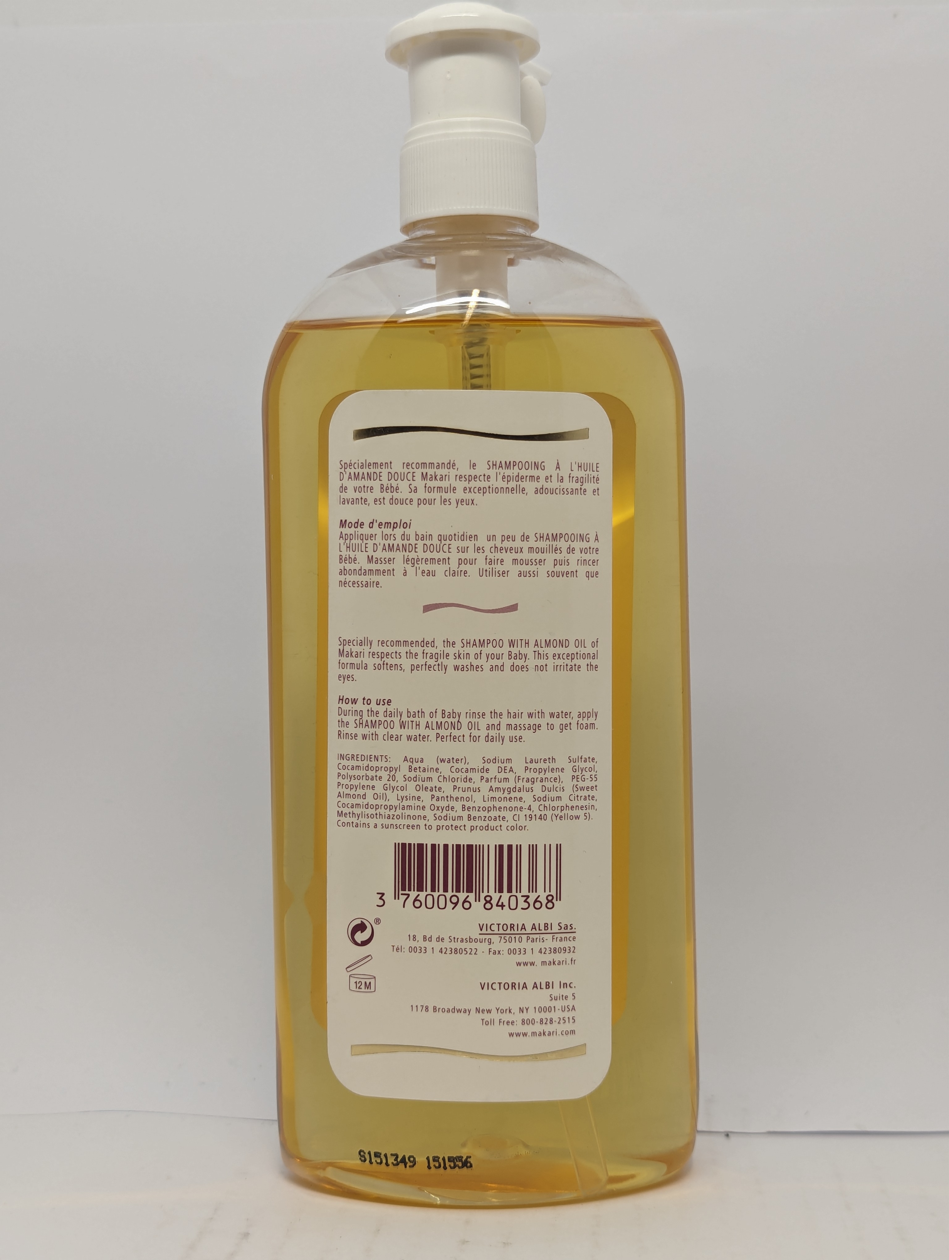 PEG-55 Propylene Glycol Oeate, Prunus Amygdslus Dulcis (Sweet Almond Oil), Lysine, Panthenol, Limonene, Sodium Citrate,Cocamidopropylamine Oxyde,