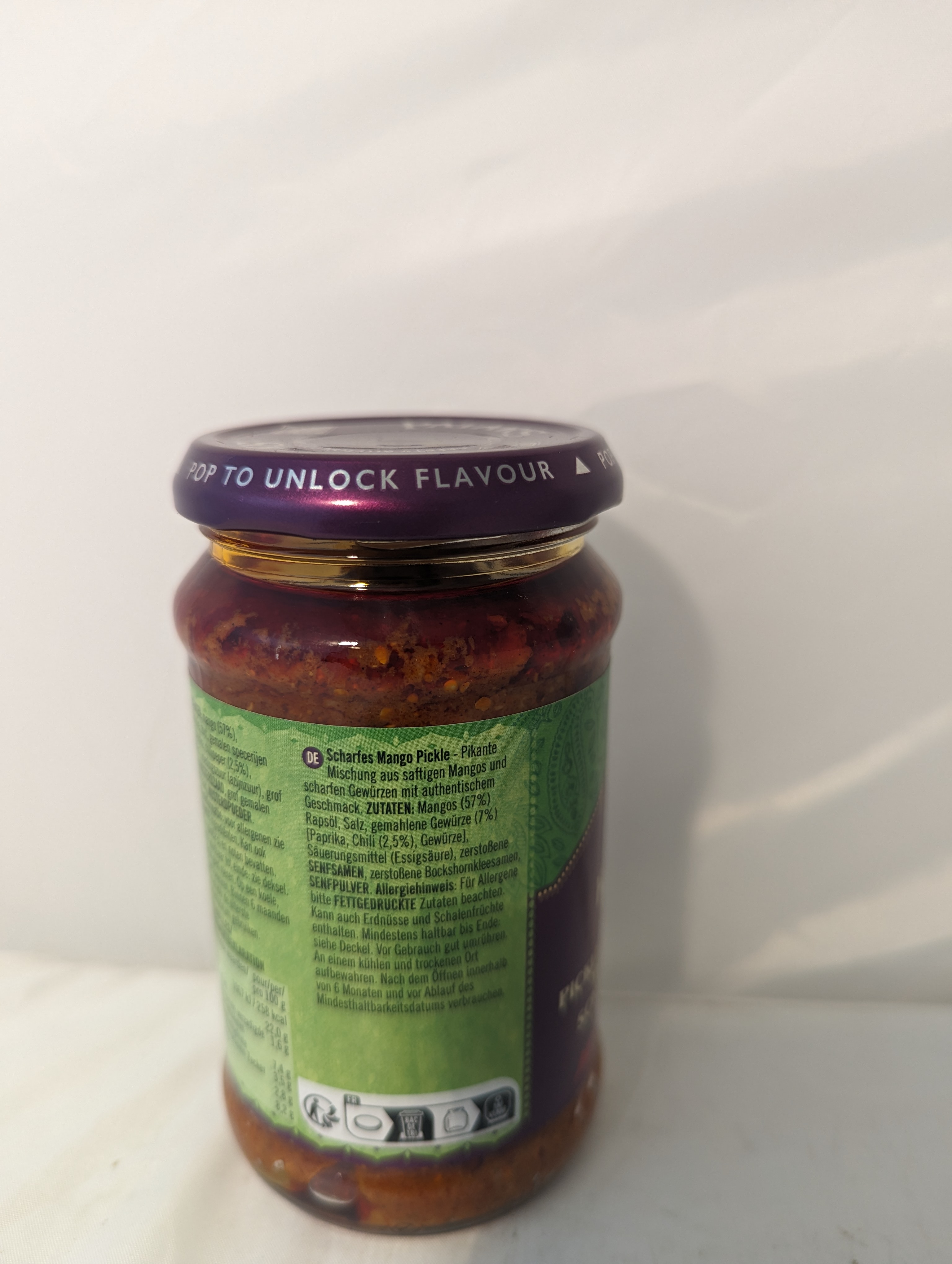 Mangos ( 57% ), Rapsöl,Salz, gemahlene Gewürze ( 7% ) ( Paprika, Chili ( 2,5% ), Gewürze ),