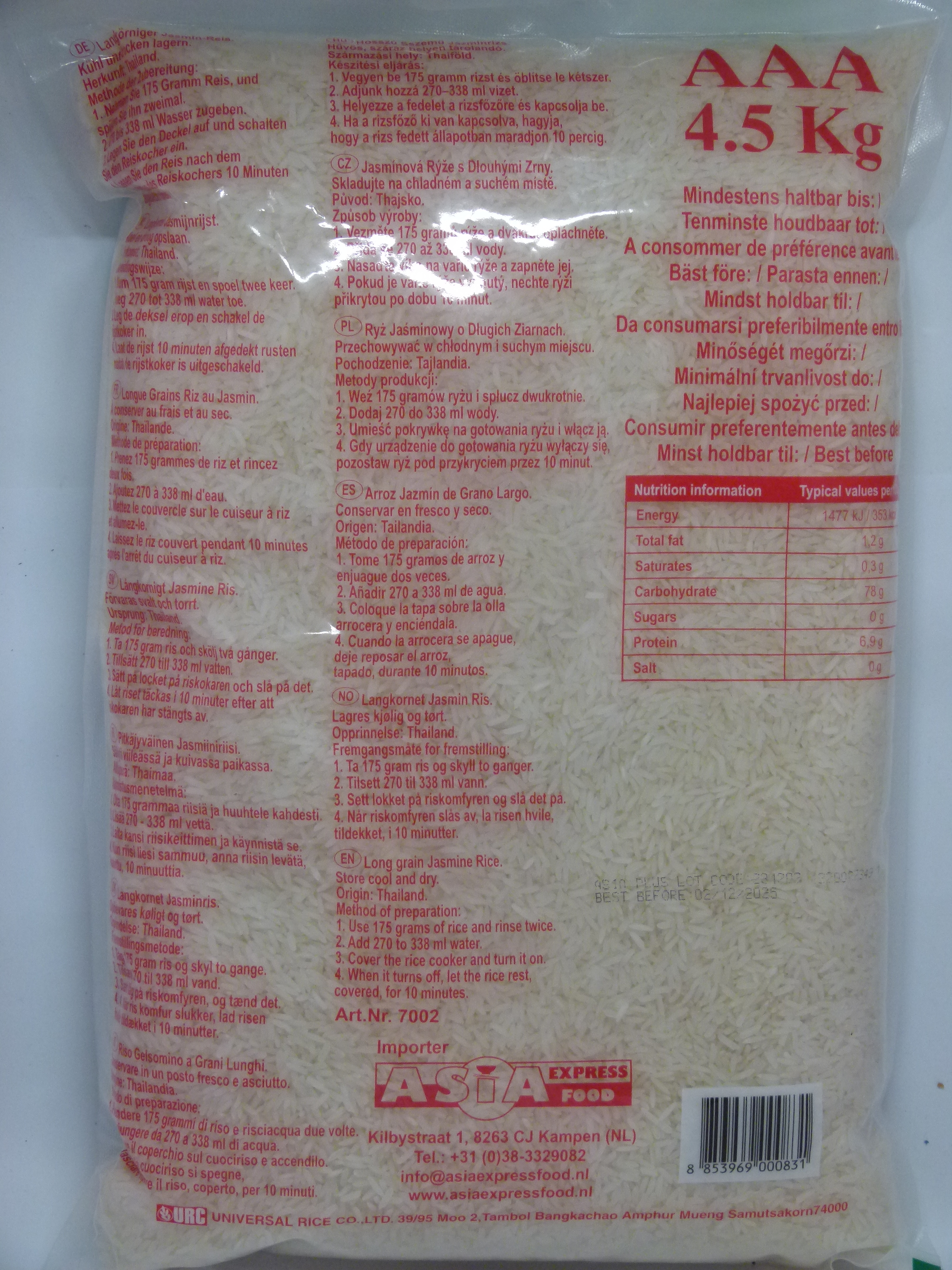 Royal Thai 100% Langkörniger Jasmin Reis, Nettogewicht 4,5kg